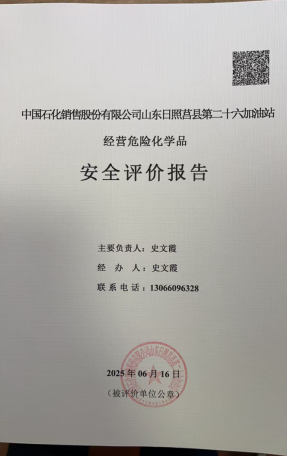中国石化销售股份有限公司山东日照莒县第二十六加油站(曾用名:中国石化销售有限公司山东日照莒县第二十六加油站、中国石油化工股份有限公司山东省日照市莒县第二十六加油站)隶属中国石化销售股份有限公司山东日照石油分公司,前身为莒县金鑫加油站。该站成立于2011年01月10日,于2020年07月21日取得日照市行政审批服务局换发的营业执照,类型为外商投资企业分公司,负责人为厉建彬,营业场所位于山东省日照市莒县浮来山镇邢家庄四村336省道南侧,现有从业人员3人,现有从业人员3人,任命史文霞为主要负责人、史文芳为专职安全员。 该站经营成品油汽油、柴油,于2025年05月12日取得了《成品油零售经营批准证书》,编号为鲁油零售证书第3711033033号,有效期至2030年05月12日;于2022年7月25日换发了《危险化学品经营许可证》,编号为鲁日危化经字[2022]000084号,有效期限为2022年7月25日至2025年7月24日,许可经营范围为汽油、柴油,经营方式为带有储存设施的经营。 根据《危险化学品经营许可证管理办法》(国家安全生产监督管理总局令第55号,国家安全生产监督管理总局令第79号修正)文“申请人带有储存设施经营危险化学品的,应当依照有关规定进行安全评价”、《关于印发<山东省危险化学品经营许可证实施细则>的通知》(鲁应急发[2025]4号)文“申请人储存危险化学品经营的,应当依照有关规定进行安全评价”的要求,中国石化销售股份有限公司山东日照石油分公司委托山东应急安全技术服务有限公司对其日照莒县第二十六加油站的经营储存条件进行安全评价。 山东应急安全技术服务有限公司接受委托后成立了评价组,对中国石化销售股份有限公司山东日照莒县第二十六加油站的储存经营条件进行了现场勘察和分析,收集了该站的有关技术、装备、安全管理等资料,运用安全检查表进行评价,编制完成了本评价报告。 安全评价结论: 通过对中国石化销售股份有限公司山东日照莒县第二十六加油站的现场检查和资料审核,并对照《汽车加油加气加氢站技术标准》(GB50156-2021)和《山东省加油站安全评价导则》(鲁安监发[2006]114号)及有关法规、标准进行了分析评价,该站经评价组现场检查,A类检查项目(除不适用项外)全部合格,B类检查项目(除不适用项外)全部合格。 依据《关于印发<山东省化工和危险化学品生产经营单位重大事故隐患排查工作手册>的通知》(鲁应急字[2025]17号)对加油站的相关情况进行了检查,该站不存在文件中所列的重大生产安全事故隐患。 评价组认为:在目前条件下,中国石化销售股份有限公司山东日照莒县第二十六加油站符合《关于印发<山东省危险化学品经营许可证实施细则>的通知》(鲁应急发[2025]4号)文规定的取得经营许可的安全生产条件,具备从事汽油、柴油经营业务能力。 |